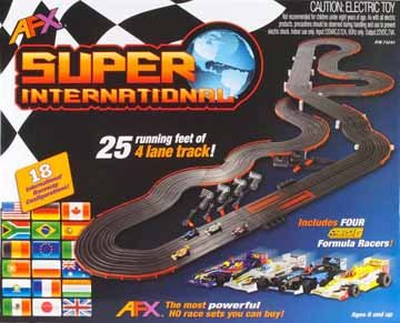 This AFX 4-Lane Super International Race Set w/Mega G Cars has made me and my family so very happy. I like this AFX 4-Lane Super International Race Set w/Mega G Cars very much, it is cool for me. And AFX 4-Lane Super International Race Set w/Mega G Cars would be perfect for someone like me, I like it. If you are looking for a AFX 4-Lane Super International Race Set w/Mega G Cars, so i high recommend this AFX 4-Lane Super International Race Set w/Mega G Cars to you. AFX 4-Lane Super International Race Set w/Mega G Cars will make you enjoy like me. I bought this AFX 4-Lane Super International Race Set w/Mega G Cars at a price that offers in USA.