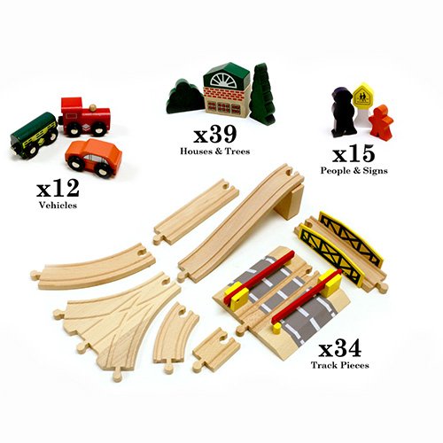 I've seen this style of wooden track sell for $7.99 a piece in a retail store near me, so to get this entire set for such a good price,