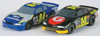 HO Scale. 2 super detailed Mega-G cars. 20% more powerful motor for brutal high speed and acceleration. Advanced magnet technology and ultra low center of gravity to