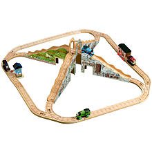 This is a nice set consisting of four double rise tracts with mountain scenery, and pierced by tunnels; surrounding connecting tracts; a tunnel; and a stop sign station. My son asks me what the stop sign station is and doesn't understand that daddy does not know everything. The tunnel is Chugginton compatable; even for Brewster. The top of the mountain pass is a four way connector. The Mountain setup can get somewhat contorted, and barely fits the width of my train table; with extra room on the length.